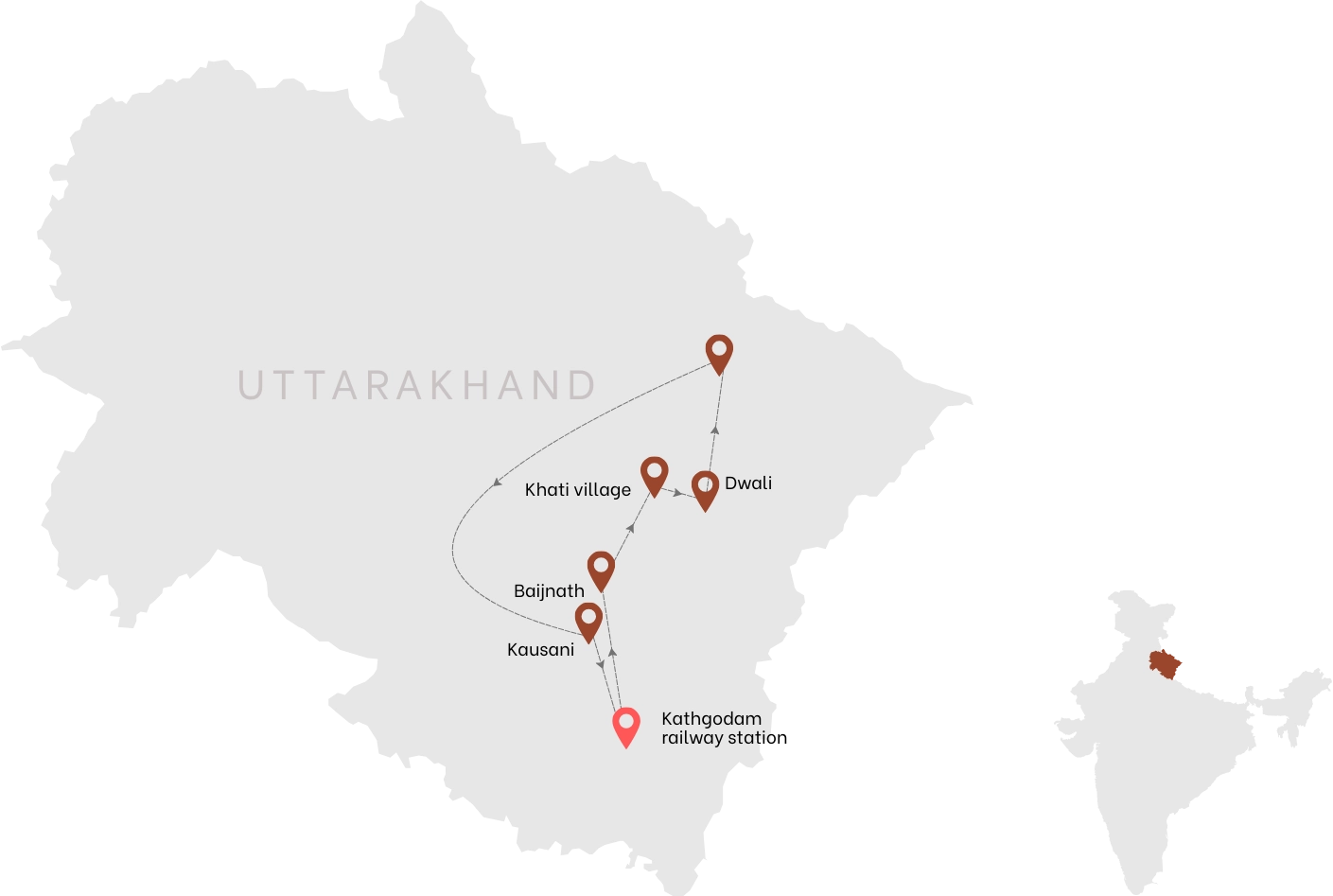 Pick-up and drop-off from the designated starting point as per the itinerary (Dehradun, Rishikesh, or Kathgodam).