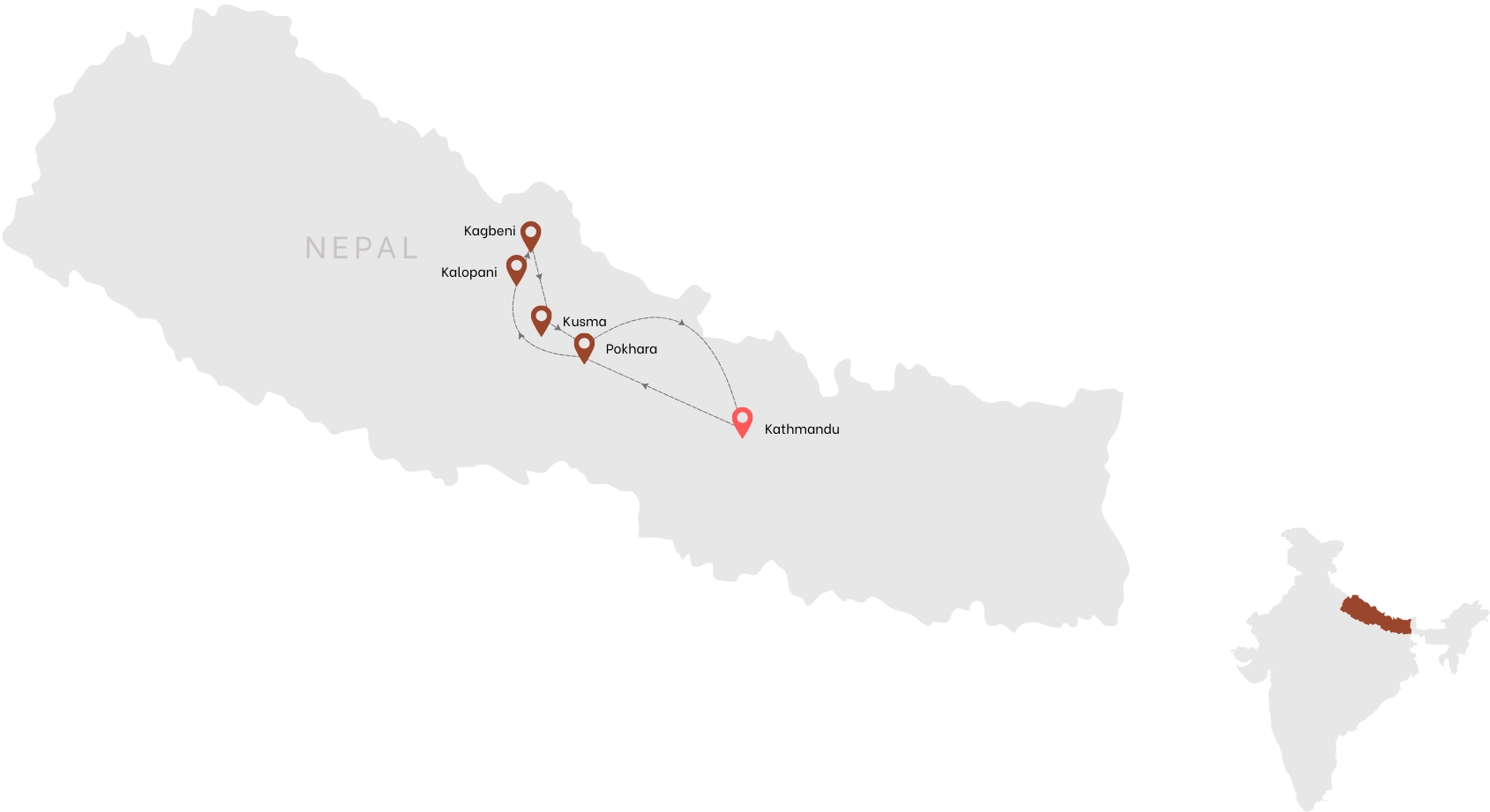 - Meals: All meals (breakfast, lunch, and dinner) except in Pokhara and Kathmandu where breakfast and dinner is included.